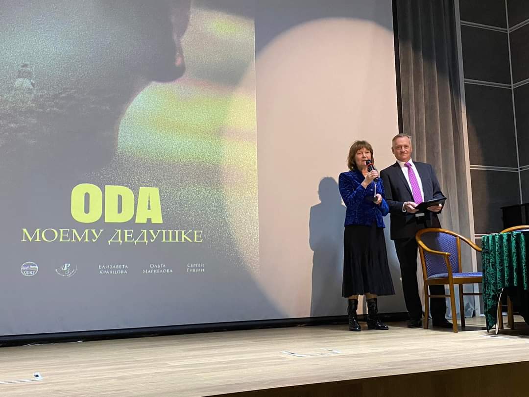 К сожалению, не смогли присутствовать на вечере друзья режиссёра Юрий Сальников и Олег Кудряшов. Очень занятый педагогической работой в ГИТИСе, Олег Львович написал «Добрый день, Елена! К огромному сожалению быть не смогу на презентации фильма. Спасибо за приглашение, успехов Вам!» Вместе с Эйви они не только учились, но и жили рядом в общежитии в середине 1960-х. Ещё раз напомню, что в декабре 2019 мне довелось поучаствовать в «наведении мостов» с театральными деятелями и затем — во вручении ему медали ОДРИ, которую Елена Сергеевна прикрепила на его кардиган на третьем этаже, «месте силы» режиссёрского факультета.