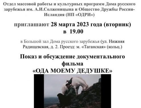 Прошло уже пять месяцев с премьеры фильма «ОДА МОЕМУ ДЕДУШКЕ», а многие , посмотревшие фильм, вспоминают о нём и благодарят ОДРИ за встречу с исландским кинематографом. Одну из рецензий мы и публикуем сегодня.