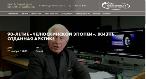 Вчера 20 ноября 2023 года в Москве в Центральном Доме Кинематографистов (Васильевская, 13) произошло событие, вернувшее зрителей на 90 лет назад в эпоху героического освоения Советской Арктики. В фойе звучали песни 30-х годов прошлого столетия «Лейся песня на просторе»... ,«Бушует полярное море…»и другие, перед входом в буфет красовались новенькие плакаты, посвящённые уже 90-летию «Челюскинской эпопеи»(выполненные Андрем Диаментом), а в зале показывали ролик о съёмках сериала «Челюскинцы. Первые».