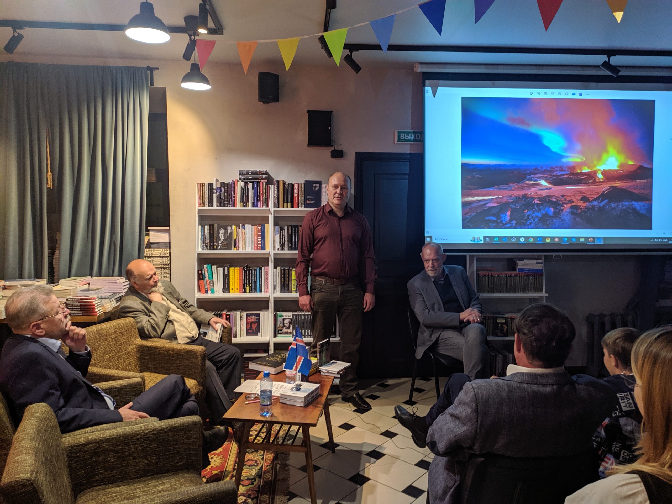 24 сентября 2024 года, во вторник в Санкт-Петербурге на гостеприимной площадке лектория книжного магазина «Во весь голос» состоялось необычное мероприятие — открытое заседание некоммерческого партнёрства «Общество дружбы Россия — Исландия» (НП «ОДРИ») и тема дня была: «Исландия-не только вулканы». Правление НП «ОДРИ» сердечно благодарит коллектив книжного магазина «Во весь голос» и прежде всего Викторию Сафонову и Вадима Зайцева за возможность этой встречи, а также обращает внимание, что в этом магазине можно купить все произведения исландской литературы, выпускаемые всеми издательствами России и лидером — издательством «Городец».