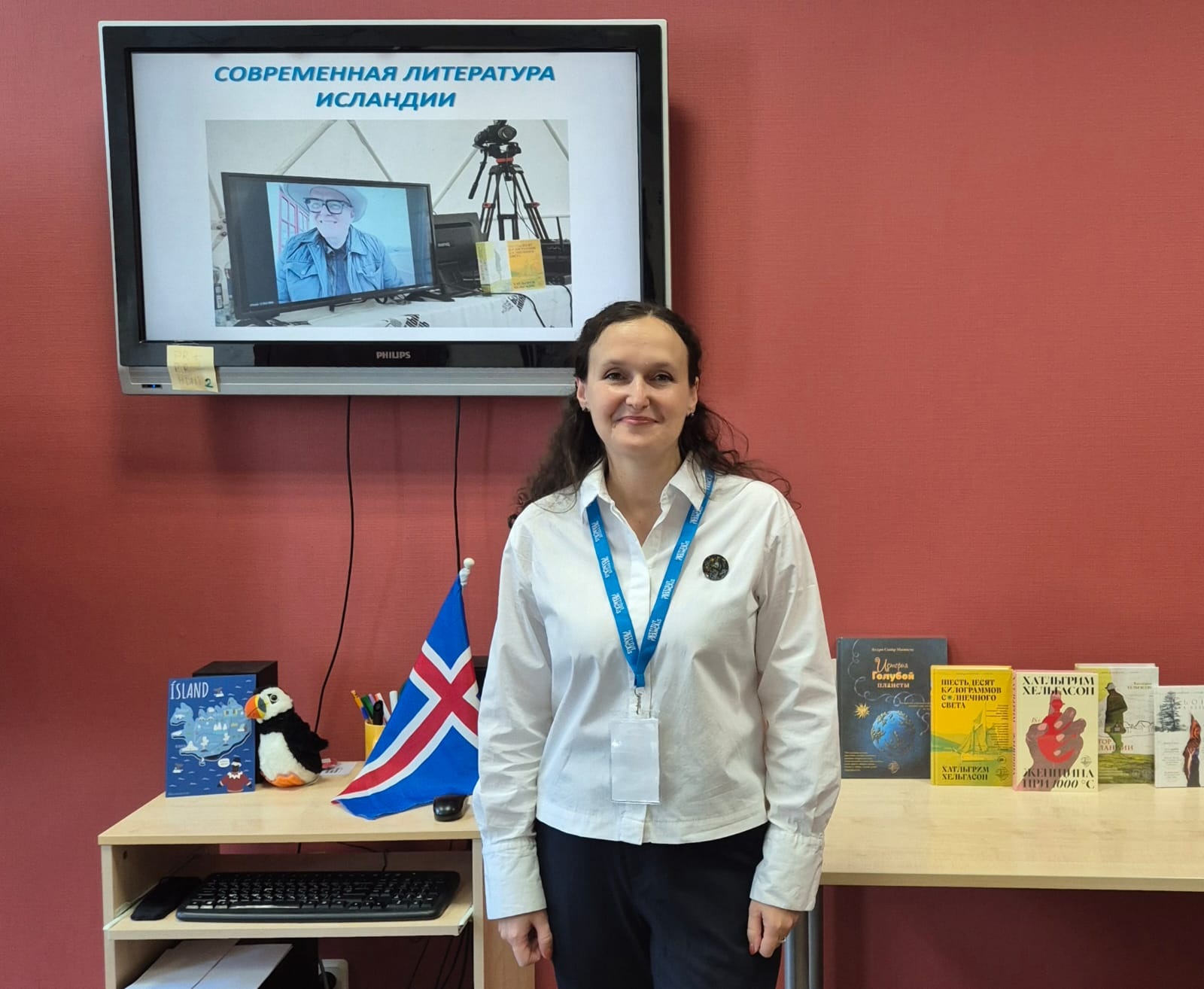 Литературу современной Исландии и российские издания произведений исландских авторов представила Елена Дорофеева — куратор серии НордБук издательства «Городец». За пять лет в серии вышло более пятнадцати исландских книг самых разных жанров. А начался проект с небольшой детской книги исландской писательницы Кристин Хельги Гуннарсдоухтир «Фиасоль во всей красе» в переводе Бориса Сергеевича Жарова. Поговорили и о работе других переводчиков — Ольги Маркеловой и Натальи Демидовой, благодаря трудам которых российские читатели могут познакомиться с творчеством Хатльгрима Хельгасона, Сьона и других авторов. В лекции Елены Дорофеевой были отмечены и исландские издания коллег из других издательств — Поляндрии, Азбуки, Бомборы, АСТ, МИФа.