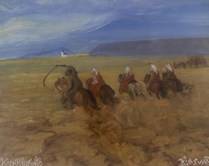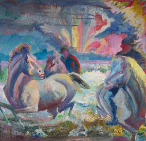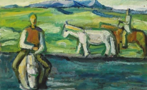 Слева: Gunnlaugur Scheving (1904-1972). «Riders and horses in a landscape», б/д