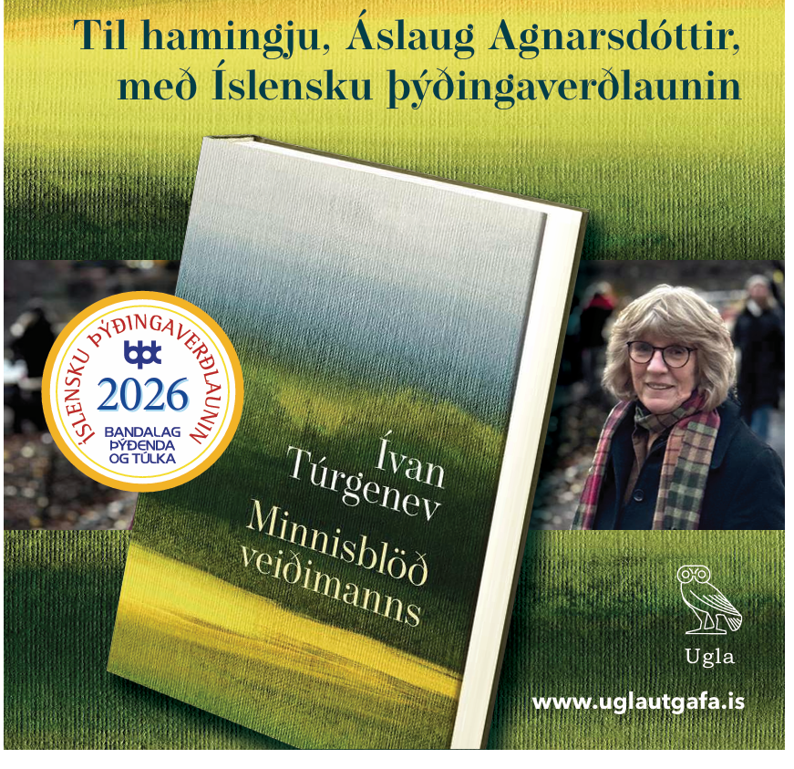 «Записки охотника» Ивана Тургенева были опубликованы в 1852 году и представляют собой сборник рассказов о России XIX века: помещиках, крестьянах, женщинах и детях, природе и ее взаимодействии с людьми. Перевод Ауслёйг Агнарсдоттир — это чистое совершенство. Рассказы переведены на прекрасный и тонкий исландский язык, где природа оживает, а персонажи обретают ясные и запоминающиеся образы в воображении читателя. Стиль живой и игривый, что делает чтение приятным. Этот великолепный перевод приносит огромную пользу, значительно обогащая исландскую переводную литературу.