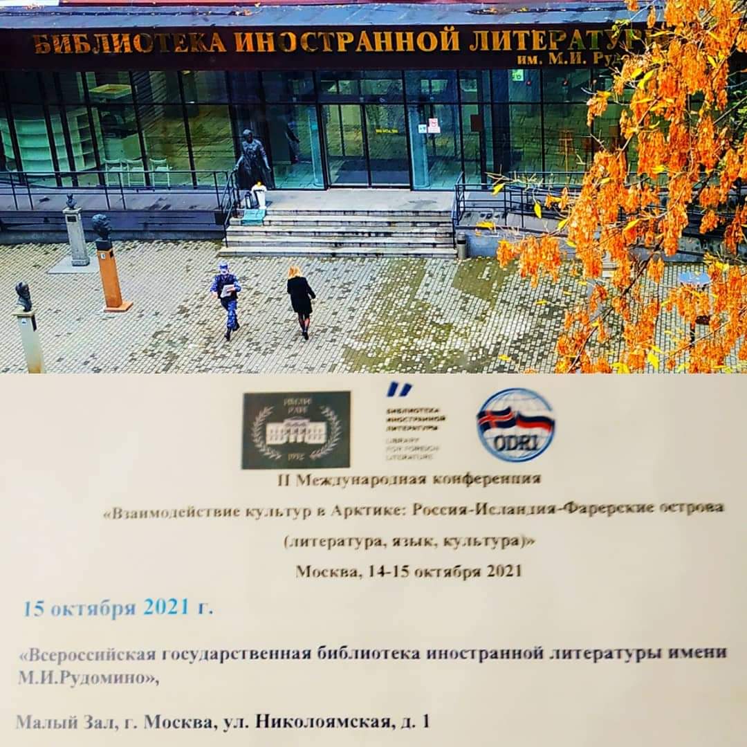 II Международная конференции «Взаимодействие культур в Арктике: Россия-Исландия-Фарерские острова (литература, язык, культура)» успешно завершилась. Она проходила два дня (14 и 15 октября 2021) на двух площадках Москвы: в ИМЛИ и Библиотеке Иностранной литературы. В работе четырех секций конференции участвовали представители Москвы,Санкт — Петербурга, Якутска, Рейкьявика и Торхавна, в очном и заочном формате было сделано 26 докладов,затронувших как вопросы литературы и языка, книгосоздания и издания, так и проблемы истории и экологии.Теплую атмосферу конференции можно почувствовать из фотографий Ирины Маликовой,Елены Бариновой,Андрея Мельникова и Федора Романенко.